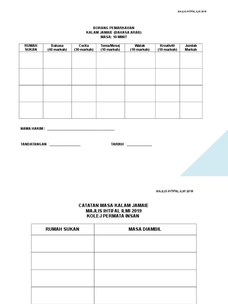 Borang Markah Kalam Jamaie Pdf